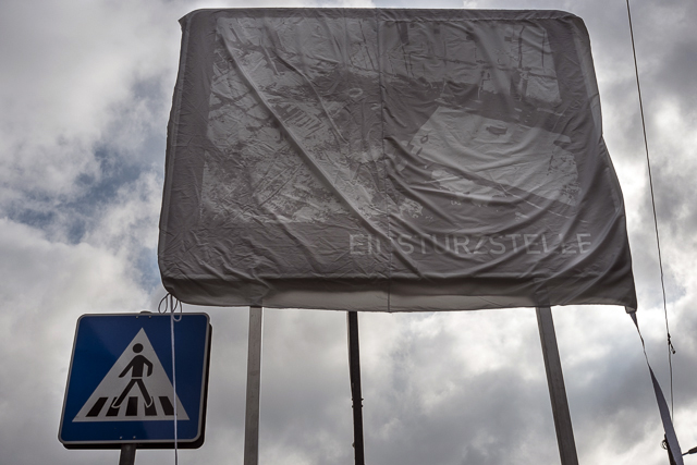 Im letzten Jahr wurde die Hinweistafel, entworfen von Mischa Kuball, Künstler und Professor an der Kölner Kunst Hochschule für Medien, von der Initiative ArchivKomplex der Stadt als ein Symbol zum Geschenk gemacht – hiermit auch darauf hinweisend, dass die Stadtverwaltung selbst bislang kein eigenes Symbol initiiert hatte. Nach einem langen Hin und Her und einem kafkaesken Zug durch die Gremien und Dezernate entschloss man sich in einer Ratssitzung fast ein Jahr später, dieses Geschenk auch anzunehmen. Ein Umstand freilich, der, nähme man nun ihn zum Symbol, für die wirklich wichtigen Fragen nicht viel Gutes hoffen lässt.