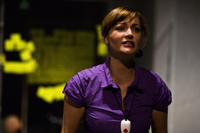 Das Stück braucht eine Viertelstunde, um in Gang zu kommen. Anfangs klingen die Gespräche wie Versatzstücke, an- und aufeinandergeklebt wie die Zettelchen auf den Plexiglaswänden. Anne zieht über ihren früheren Chef her, Holger leidet an seinem Arbeitslos-Sein, Peter bekommt seine Skulptur nicht fertig und spielt Gespräche mit seiner Kuratorin nach.