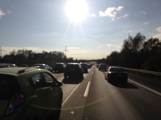 meinen Nachwuchs aus, es waren Ferien – wir hatten Lust und Zeit. Aufgrund der Streikdiskussionen bei der Bahn musste mein Auto ran. Die Hinfahrt war auch extrem easy, doch die Rückfahrt hatte es in sich. „Ferienende in NRW, -start in Berlin und der Bahnstreik“, wie kann man sich dann auf die Autobahn machen?“ Diese und ähnliche Kommentare habe ich gestern, nachdem wir gute acht Stunden für die Strecke gebracht haben, mehrfach gehört. Ja, richtig. Zum Glück aber hat uns ja beim Stau auf der Avus, der kurzzeitigen Sperrung der A2 und dem schwer zu befahrenden Nadelöhr kurz vor Leverkusen die Sonne bestens begleitet. Im Radio beschrien die Radiomoderatoren das herrliche Herbstwetter und forderten ihre Hörer auf, dieses zu nutzen und an die frische Luft zu gehen.