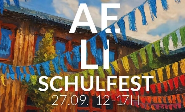 Ein Fest für Schüler:innen, Eltern, freund:innen und Interessierte mit: Cafeteria, Waffeln, Salatbar, Stockbrot, Apfelpresse, Spielen, Parcours, Musik, Tanz, Bücherverkauf uvm.