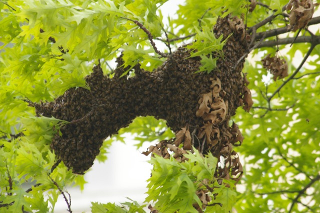 waren Augenzeuge einer aufregenden Aktion. Ein Bienenschwarm hatte am vergangenen Sonntag, 2.6.2013, in einer der Baumkronen in der Ateburger Straße Station gemacht.
