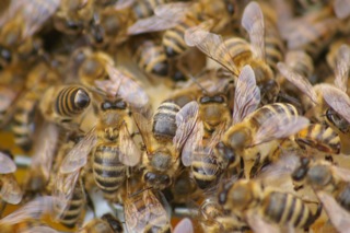 waren Augenzeuge einer aufregenden Aktion. Ein Bienenschwarm hatte am vergangenen Sonntag, 2.6.2013, in einer der Baumkronen in der Ateburger Straße Station gemacht. Eine Nachbarnin hatte diesen entdeckt und die Feuerwehr gerufen, die wiederum die Imkerin Larissa Aurelia Helm kontaktierte. Wichtig bei einer solchen Rettungsaktion ist, dass die Königin eingefangen wird, die Bienen folgen dann automatisch Duft ihrer „Mutter“, und somit kann man das ganze Volk einfangen. Die ganze Aktion hat einige Stunden gedauert, da die Imkerin alle Bienen in den Eimer locken wollte, nicht nur die Königin. Dabei musste mehrfach mit der Hilfe vom Besen die Bienentraube am Baum abgeschüttelt werden. Larissa wird die Bienen in Finkens Garten in einem ihrer leeren Stöcke aussetzen. Wer wissen will, was zu tun ist,wenn demnächst ein Bienenschwarm am eigenen Balkon oder im Baum vor der eigenen Wohnung pausiert, erfährt Tipps von der Imkerin unter www.koelner-imkerverein.de.