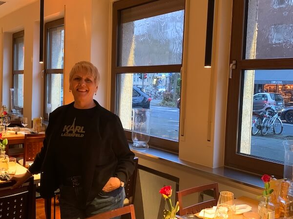 Brigitte ist die Herrin über das Il Nido. Die Beiden kennen sich schon seit mehr als 40 Jahren und haben seit ihrem ersten Zusammentreffen auf dem Flusskreuzfahrtsschiff Seite an Seite gearbeitet. „Rotterdam-Basel, Basel-Rotterdam – ich kenne jeden Winkel dieser Strecke“, erinnert sich Cherie, wie Brigitte von Gino gerufen wird. Die gebürtige Französin, die eigentlich schon kurz vor ihrem ersten Job als Englischlehrerin in ihrer Heimat stand, ist froh, dass sie sich vor vielen, vielen Jahren für Gino und die Gastronomie entschieden hat. „Ich liebe es, Gastgeberin zu sein und meinen Gästen eine gute Zeit zu bereiten.“ Und das merkt Jede*r, die/der im Il Nido zu Gast ist, sofort.