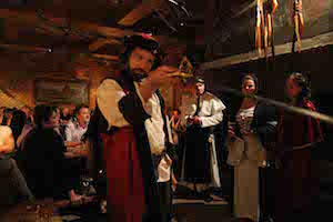Die Severinstorburg lädt am Freitag zum spannenden „Kriminal Dinner – Wenn die Turmuhr dreimal schlägt“ – ein. Ihr begebt Euch auf die Reise ins Mittelalter, Anno Domini 1345. Der „ehrenhafte“ Patrizier Wolff von Hohenberg hat es nicht leicht. Er versucht, seine Familie und die Bediensteten gut zu versorgen. Doch alle sind nur an ihren persönlichen Zielen interessiert. Seine Frau möchte mehr Mitspracherecht in Erziehungsfragen und beschuldigt ihn gar des Ehebruchs. Sein Mündel Endlein möchte einen anderen Mann heiraten, als den von Wolff vorgesehenen. Plötzlich taucht auch noch ein anonymes Drohschreiben auf. Das Chaos ist somit perfekt. Wie soll man da noch Verlobung feiern? Genießt Euer Mahl mit Burgfräulein und Rittern. Versucht herauszufinden, wer welches Motiv hatte. Der Nerven- und Gaumenkitzel startet am Freitag um 19 Uhr, Einlass ist ab 18:30 Uhr. 99 Euro pro Person inklusive Getränkepauschale. Mehr Infos am Telefon unter 0221-5606095. (Foto: Kriminal Dinner)