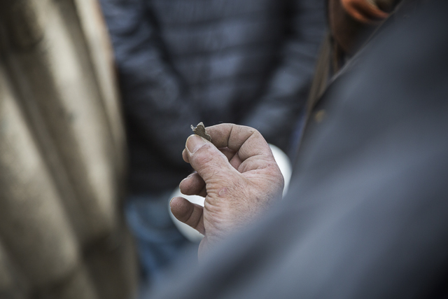 Man steht in kleiner Gruppe auf dem Außengerüst der Kirche und kann aus nächster Nähe bestaunen, was in den letzten Wochen auch von unten zu sehen war. Da turnten selbst bei widrigsten Wetterbedingungen Dachdecker in luftiger Höhe herum und nagelten Schieferplatte um Schieferplatte fest.