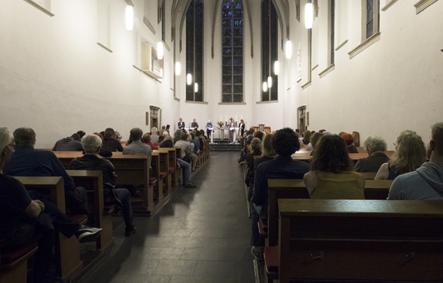 Mit einem etwas anderen Format wartete diese Podiumsdiskussion im Vorfeld der Bundestagswahl auf. Das Publikum in der Kartäuserkirche war aufgefordert, Fragen auf vorab verteilten Zetteln zu notieren. Diese Fragen wurden später vorgelesen und vom Podium beantwortet. Langatmige Statements aus dem Auditorium, sonst verlässliche Begleiter jeder Podiumsdiskussion, waren somit ausgeschlossen.