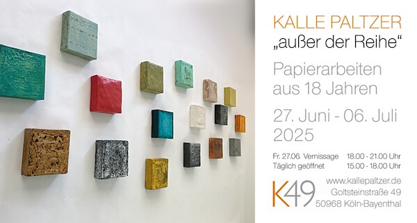 Kalle Paltzer beschäftigt sich seit 2005 mit dem re- und upcyceln von Papier. Haptisch-optische Reize und skulpturale Präsenz potenzieren sich im Spannungsfeld von Licht und Schatten, die sich an Rasterlinien, -punkten, Wölbungen oder Craquelées scheiden. Paltzer verbindet zwei offene Schöpfungsprozesse miteinander. Die Ausstellung präsentiert neben den seit 2010 hauptsächlich in Schwarzweiß gehaltenen Arbeiten des Künstlers auch eine Vielzahl alter und neuer farbiger Werke.