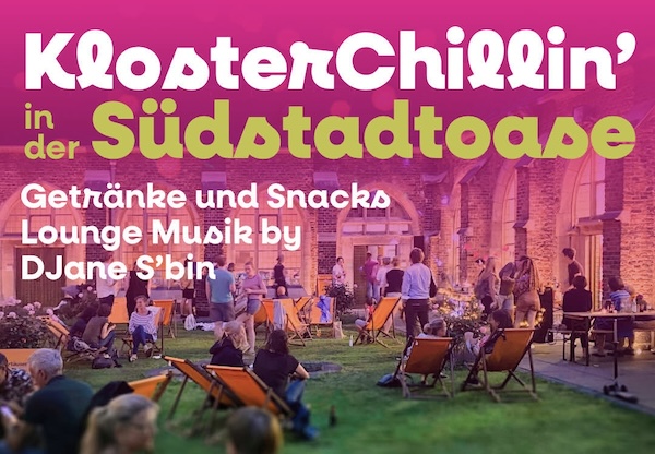 Beim KlosterChillin‘ im Innenhof der Kartäuserkirche legt DJane S’bin Lounge Musik auf. Bei Getränken und Snacks lässt sich in der wunderschöne Klosteroase mitten in der Südstadt entspannt der Samstagabend genießen. Das Abendlicht taucht die alten Mauern in ganz besondere Farben und verwandelt das Kloster in einen magischen Ort. Bild: Tim Mahr