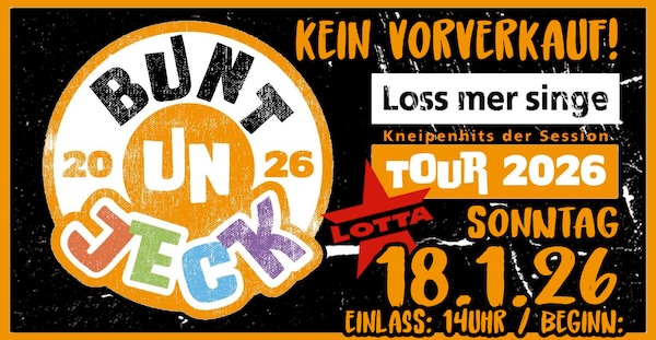 Einsingen in den Karneval ist Motto und Grundidee der alljährlichen „Loss mer singe“-Kneipentour – mit Lied- und Abstimmzetteln und zwanzig vielversprechenden Neuerscheinungen im Gepäck. Das Team von „Loss mer singe“ tourt seit unglaublichen 26 Jahren durch die viel besungene Stadt, um die Jecken fit und textsicher für den Kneipenkarneval zu machen. Wir präsentieren Musik aus […]