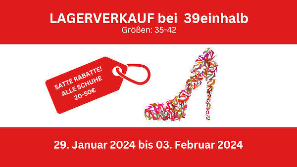 Die Schuh-Expertin des Viertels, Elke Scherbaum, räumt eine Woche lang ihr Lager. Jede Menge Winterschuhe, alle zwischen 20 und 50 Euro, stehen zum Verkauf. Neben vielen Markenschuhen von ART, Donna Piu, FERRI,FitFlop, Högl, Mally, Mimu, Quest und Progetto in den Größen 35-42 gibt es auch reduzierte Fashion & Accessoires.